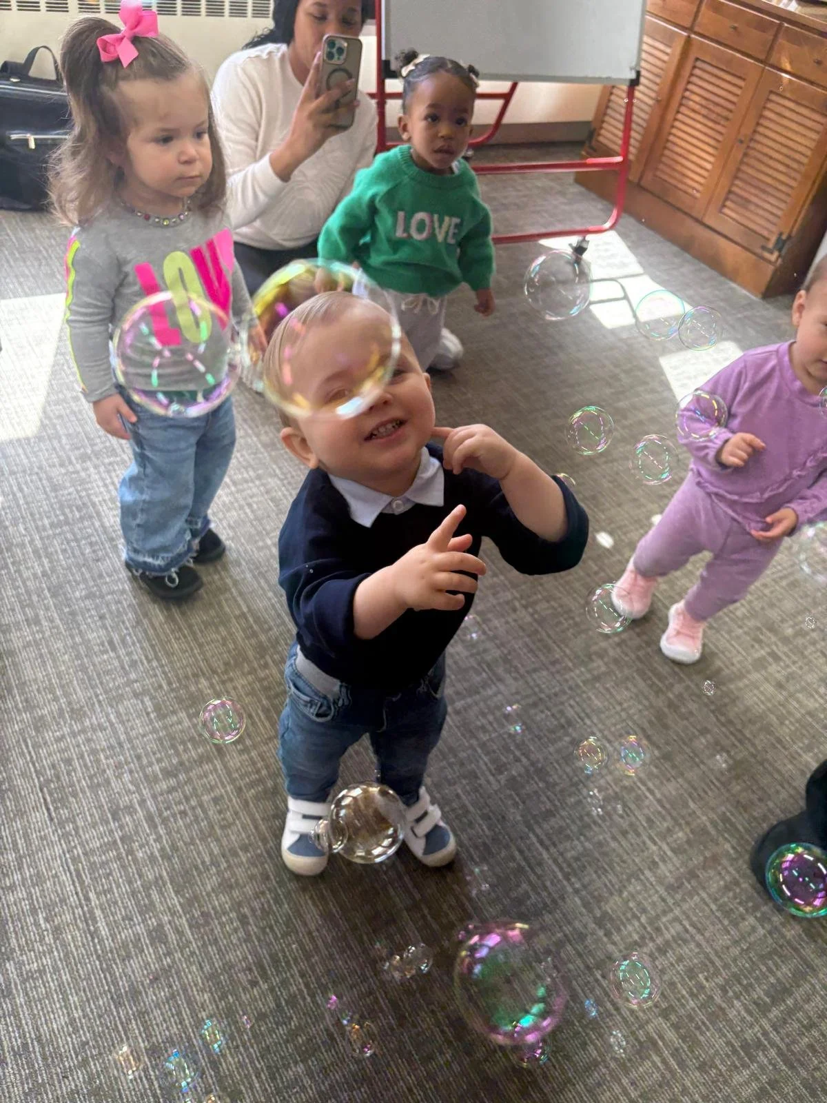Our library programs offer families a fun, low-commitment way to experience Musical Munchkins, often held once a month. These engaging sessions introduce children and caregivers to our playful mix of singing, movement, and instrument exploration in a relaxed, community setting. It’s the perfect opportunity to explore our program for the first time, enjoy music together, and see how Musical Munchkins brings learning and joy to every child.